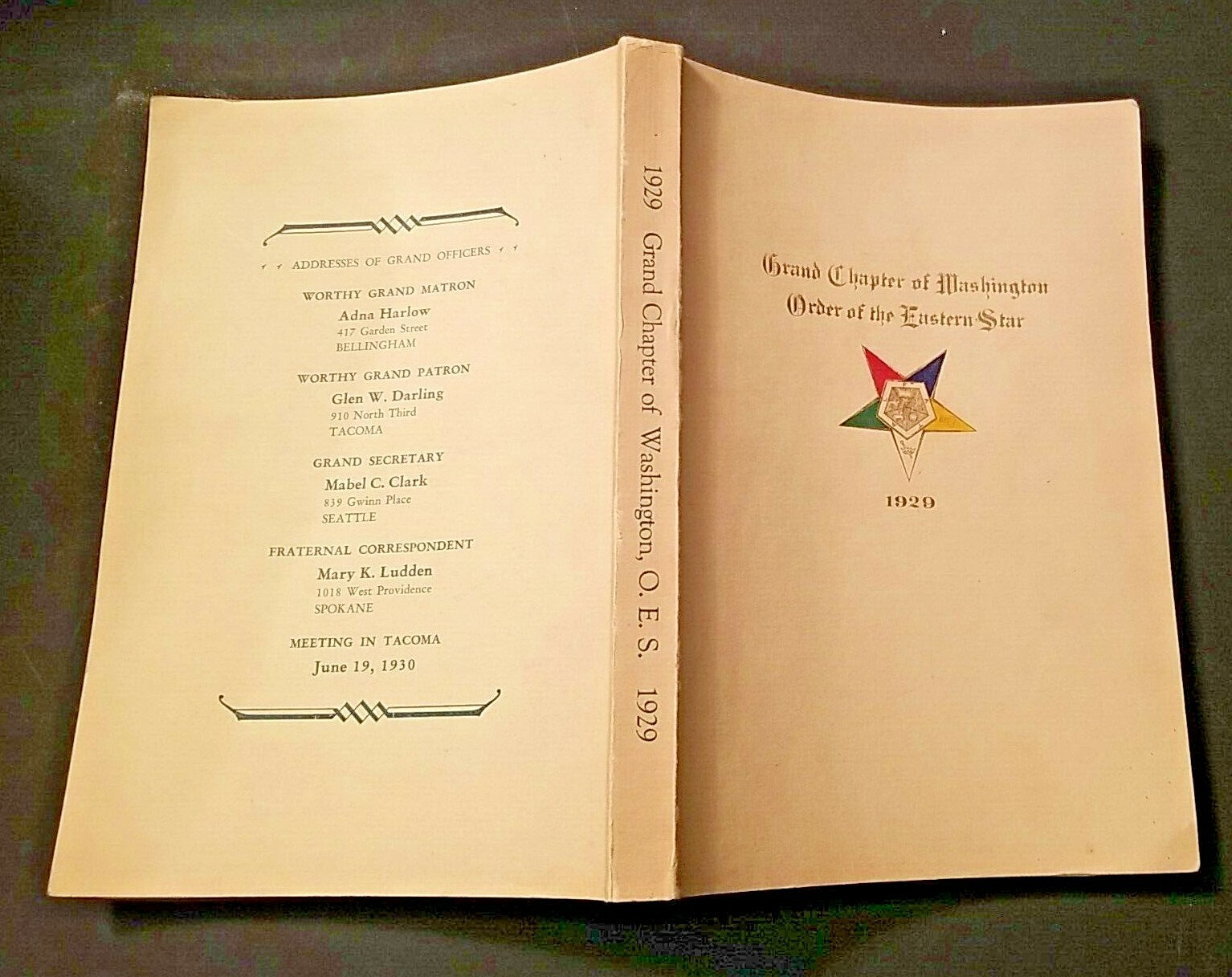 1929 Grand Chapter Of Washington Order Of The Eastern Star 41st Ses Proceedings Ebay